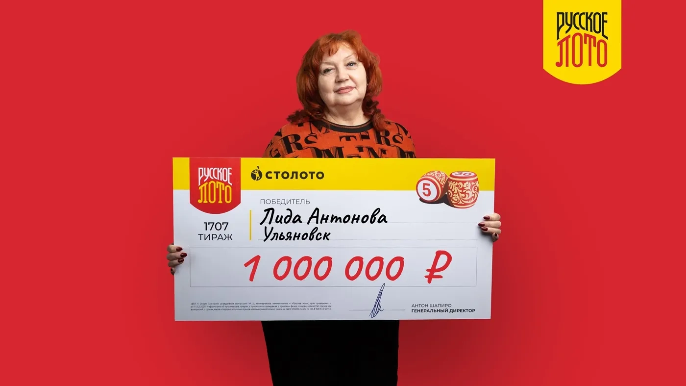 Одним из победителей стала Лидия Антонова из Ульяновска. На 1707-й тираж Лидия Николаевна купила конверт с лотерейными купонами в точке продаж «Столото», один из этих купонов принес ей 1 000 000 рублей.