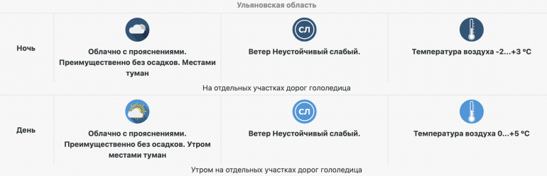 Относительная влажность по-прежнему будет высокой, что приведет к образованию тумана с ухудшением видимости 500 метров и менее. Водителям стоит быть осторожными: на отдельных участках дорог возможна гололедица.