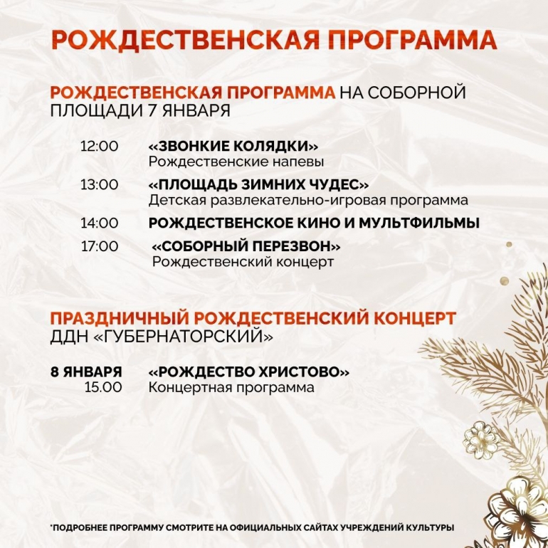 На 7 января 2026 года в Ульяновске запланированы различные рождественские мероприятия, включая народные гулянья на Соборной площади и специальные программы в учреждениях культуры.