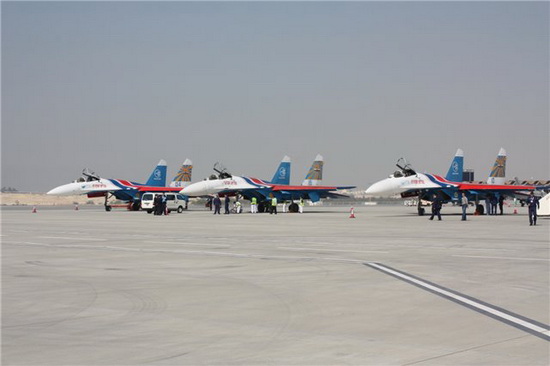 Звено истребителей Су-27 в Бахрейн, действительно прилетело. К слову, это первый за последние четыре года вылет «Русских стрижей» за пределы России. Вот они на земле:
