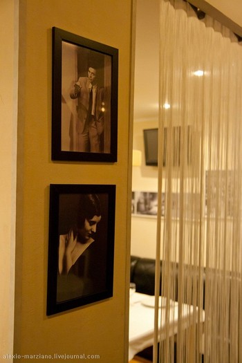 Кроме обычных столиков в кафе есть уютные кабинки с диванами, в которых при желании можно отгородиться от окружающего мира плотной портьерой: