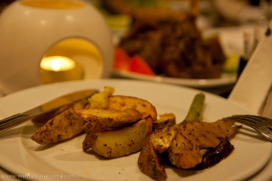 Пока осматривали внутреннее убранство кафе, подоспело жаркое: