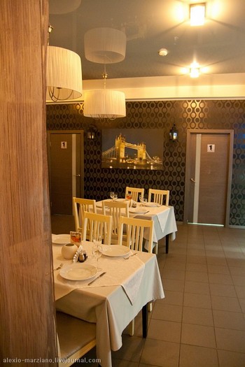 По словам Веры, дизайнеры не ставили задачу привнести в дизайн интерьера кафе что-то нативно-английское. Поэтому можно назвать это импровизацией. Получилось довольно уютно.