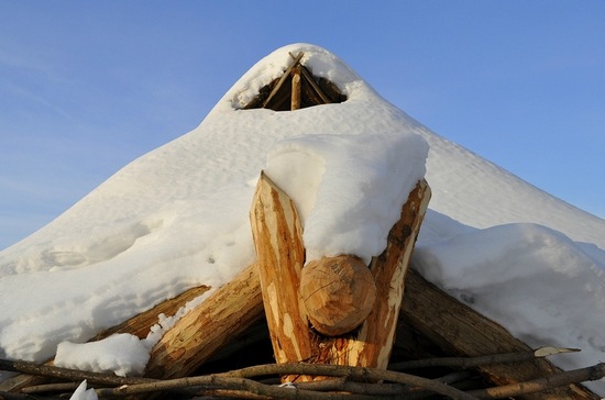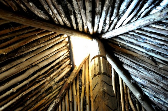 Собственно говоря, крыша - это самое сложное в реконструкции. Поскольку объекты, находившиеся на уровне земли легко восстановить по итогам археологических раскопок, то как выглядела надземная часть конструкции - большой вопрос. Например, прототип этой постройки с Самарской Луки погиб в пожаре. Такие сложности и прибавляют ценности нашим экспериментам. Потому как вообразить как могло выглядеть раскопанное жилище и нарисовать его на бумаге или в компьютере - это одно. А вот проверить на собственной шкуре можно ли жить в представленном объекте - это совершенно другое.