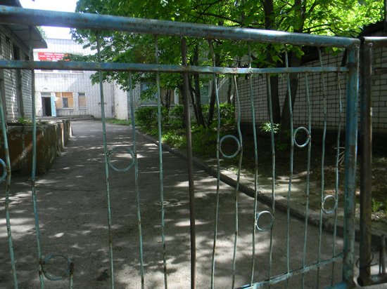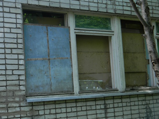 В бывшем детском саду все окна разбиты, заколочены фанерой.