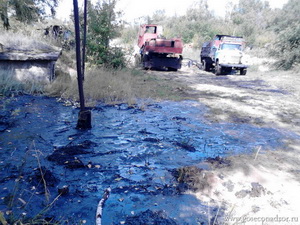 Банальная кража стала причиной экологической катастрофы на Нижней террасе. Воры распилили бочки и трубопровод с мазутом, а теперь пачкают им близлежащую территорию.