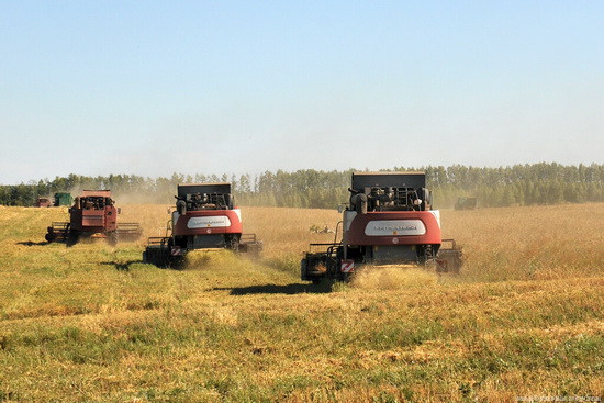 Всё же на одном из полей мне удалось увидеть красивую работу зерноуборочных комбайнов и понаблюдать за работой мастеров своего дела. Это, как объяснили сами механизаторы, техника «Симбирской птицефабрики», но ульяновских механизаторов среди них нет.
