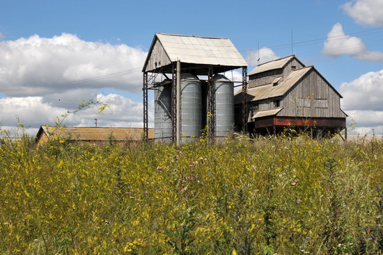 Следующее село - Репьевка. Среди поросших бурьяном полей трудно было найти зерноток, где ожидал увидеть кипучую жизнь сельчан на подработке зерна.