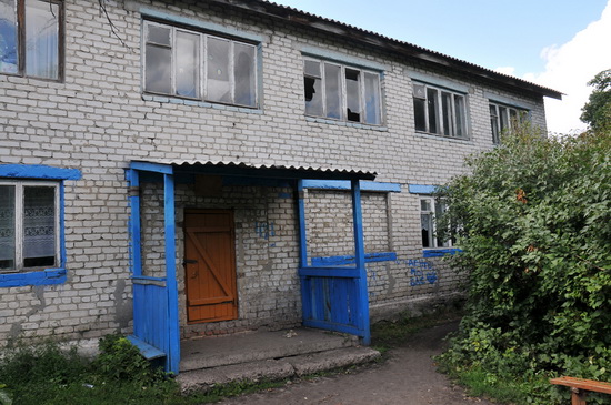Сельский клуб, который никогда не открывается. Крыльцо клуба и прилегающие кусты вечерами превращаются в место сбора для распития пива и спиртных напитков.
