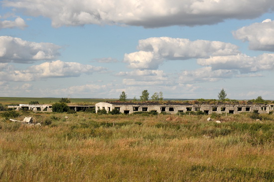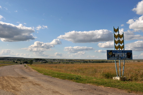 От бывшего совхоза «Рощинский» остался памятный указатель советских времен и недостроенный жилой дом для своих рабочих.