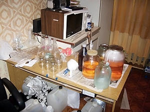 В ноябре прошлого года в Ульяновский ЛО МВД России на транспорте поступила информация о том, что некий гражданин Т. занимается незаконным оборотом дезоморфина. После двух реализованных пробных закупок было принято решение задержать торговца наркотиками. При обыске квартиры было обнаружено большое количество готового дезоморфина, расфасованного по шприцам и флаконам-капельницам, а также предметы и вещества, которые являются компонентами для изготовления кустарным способом наркотического вещества. Гражданин Т. употреблял дезоморфин сам и готовил его на продажу, скольким людям он успел продать «смерть» уже точно не узнать. Несмотря на раскаяние, суд приговорил наркоторговца к 8-ми годам и 3-м месяцам лишения свободы в колонии строгого режима по ст.30 ч.3 , ст.228 ч.2,3.
