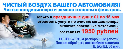 Только в праздничные дни с 01 по 15 мая стоимость услуги по очистке кондиционера, включая расходные материалы, составляет 1950 рублей.