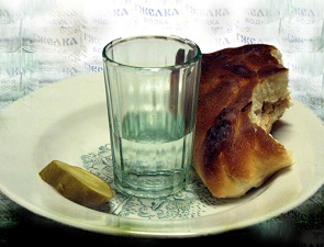 Так, например, в советские годы в Ленинграде в местах «массовых шествий пролетариата» работали рюмочные. Открывались они в 7 утра, торговали в них водкой на разлив. Максимальная доза, которую можно было заказать - 100 грамм. При этом посетитель в обязательном порядке должен был купить «в нагрузку» бутерброд с котлетой. Иначе его вообще не обслуживали. Съест или не съест, это его дело, но купить обязан. Пролетарий, усугубивший накануне вечером, заходил в рюмочную, «поправлялся» и шел на работу. В противном случае он мог вообще никуда не пойти, а остаться усугублять дома.