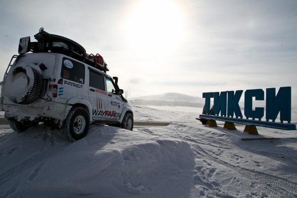 26 марта экспедиция на внедорожнике UAZ Patriot достигла одного из самых северных портов России - п. Тикси, затерянный на побережье Северного Ледовитого океана.