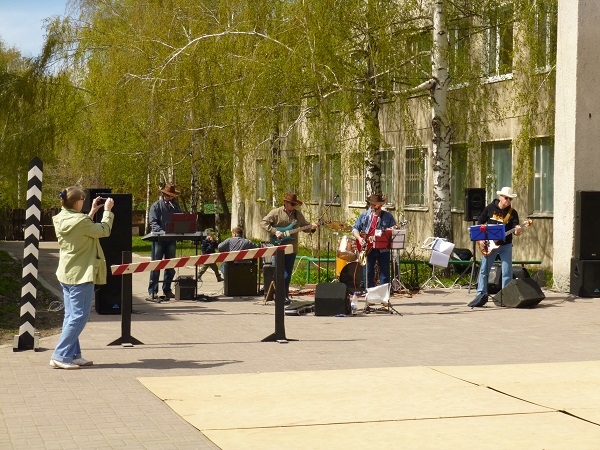 У Дома Офицеров выступали местные группы, там же можно было примерить настоящую каску, сохранившуюся с военных времен.