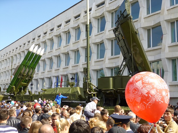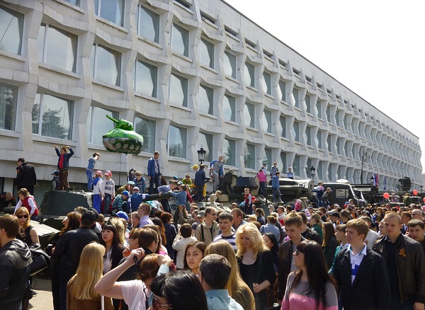 Самой оживленной в это время была территория от площади Ленина до Мемцентра. На ней расположились различные торговые палатки и кафе, а под стенами Педуниверситета организовали выставку военной техники, которая вызвала живой интерес как у взрослых, так и у детей.