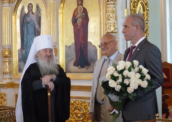 Губернатор в ответном слове выразил так же надежду, что новый митрополит будет тесно взаимодействовать с Правительством области и кратко рассказал о том, что уже сделано в регионе для верующих. Речь шла так же о строительстве и возрождении церквей. В завершение своей речи Сергей Морозов вручил Владыке Феофану шикарный букет белых роз.