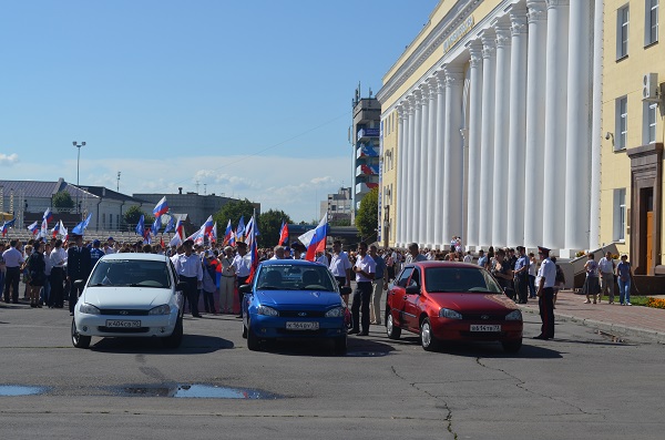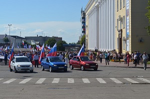 Началось шествие около 11 часов дня. Оно сопровождалось зажигательными бразильскими ритмами в исполнении местных барабанщиков. Во главе шествия двигалась автоколонна из трех автомобилей «Лада Калина» цветом российского флага. Правда, не совсем понятно, почему колонна состояла именно из «Калин», а не, например, из «Патриотов».