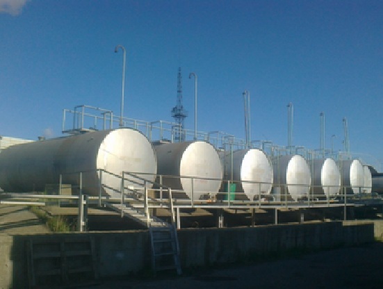 4. Нефтебаза, включает в себя 8 зданий, резервуарный парк под хранение светлых нефтепродуктов. Общий объем резервуарного парка составялет 2865 кубических метров. Для удобства на территории есть железнодорожные пути.