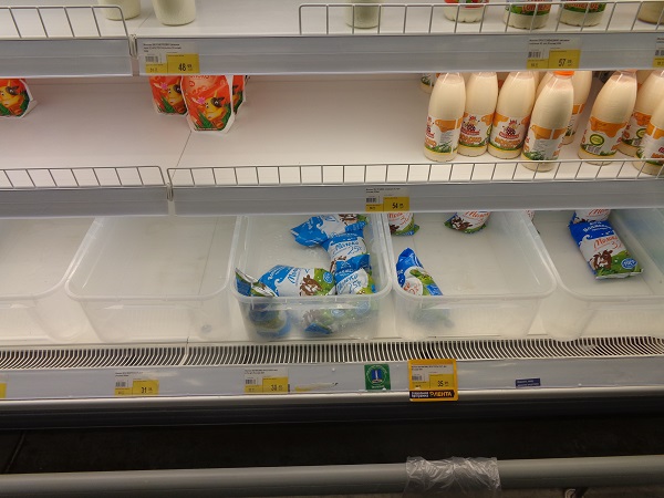 Стоит отметить, что с молоком в Ульяновске есть небольшие «напряги», если судить по внешнему виду магазинов. Вот что осталось от «Волжских просторов» в той же «Ленте»