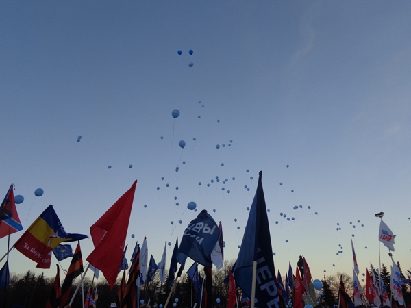 Официальная часть митинга закончилась запуском шариков в небо