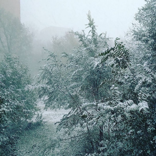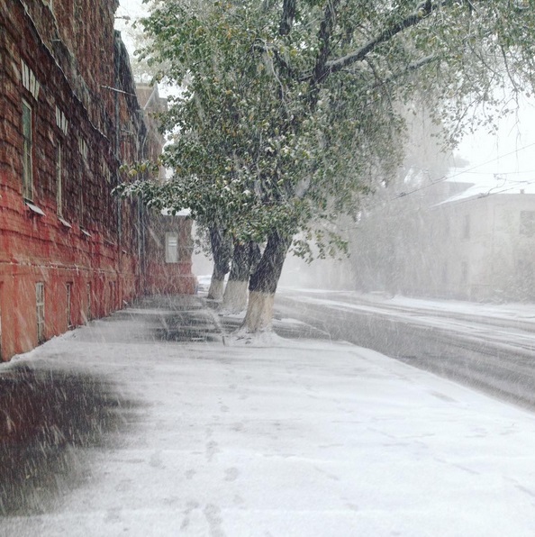 Ульяновск вновь накрыла непогода. Два часа назад на город обрушился снегопад и пользователи соцсетей начали постить на своих страничках фотографии, на которых еще зеленые деревья покрыты снегом. На дорогах уже коллапс. По состоянию на 15.30 образовалась пробка в сторону старого моста. Ситуацию усугубляет еще и то, что автолюбители не успели переобуть машины в "зимнюю" резину, поэтому за последний час в городе произошло уже десятки мелких аварий.
