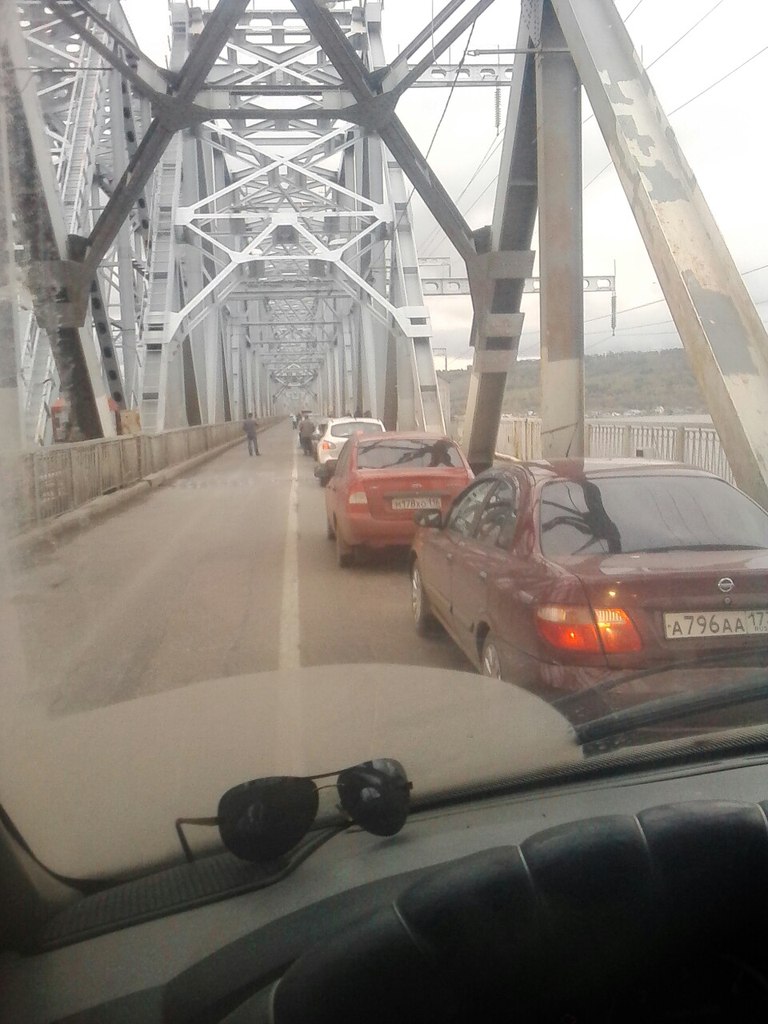 В Ульяновске на Императорском мосту образовалась пробка. Очевидцы сообщают, что виновниками стали три автомобиля, которые столкнулись при въезде на мост.