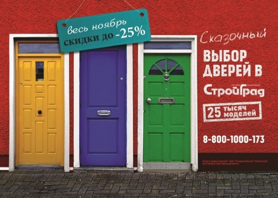 Среди 25 000 моделей, изготовленных из высококачественных и экологически чистых материалов, Вы точно найдете дверь своей мечты. Приятно порадуют и цены - весь ноябрь Вас ждут дополнительные скидки до 25%.*