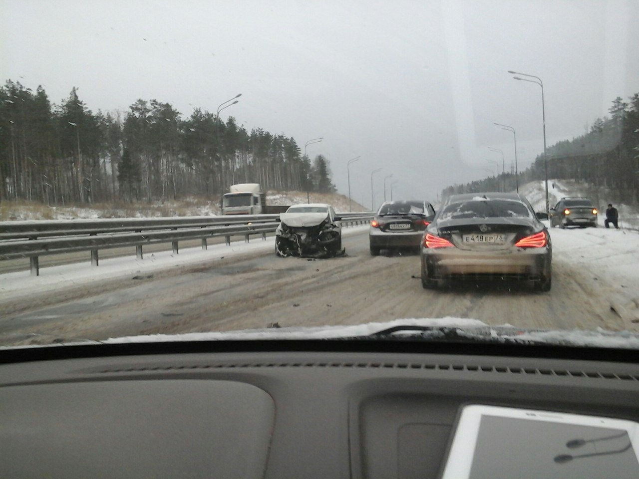 Сегодня утром, 17 ноября, произошла авария на подъезде к «новому» мосту со стороны Заволжского района. Водитель иномарки не справился с управлением и влетел в отбойник.
