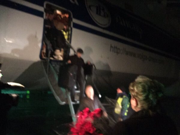 Людей с самолета сразу пересадили в автомобили и вывезли со взлетной полосы за пределы аэродрома.
