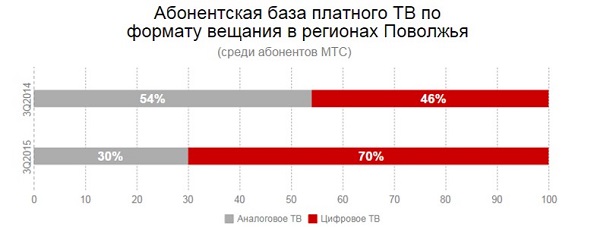 Компания МТС сообщила о росте популярности цифрового ТВ среди абонентов Домашнего ТВ МТС в регионах Поволжья. По сравнению с третьим кварталом 2014г., в этом году подключение услуги цифрового телевидения увеличилось почти на треть.