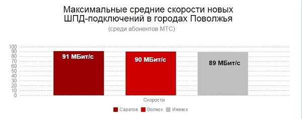 В 2015 году МТС систематически увеличивала скорости домашнего интернета на тарифных планах в регионах Поволжья. Так, средняя скорость новых подключений домашнего интернета увеличилась более чем на 30 процентов - до 68 Мбит/с, в то время как год назад этот показатель составлял 52 Мбит/с. При этом количество абонентов, отдавших предпочтение тарифам со скоростью от 100 Мбит/с и выше в 2015 году увеличилось почти на 20 процентов.