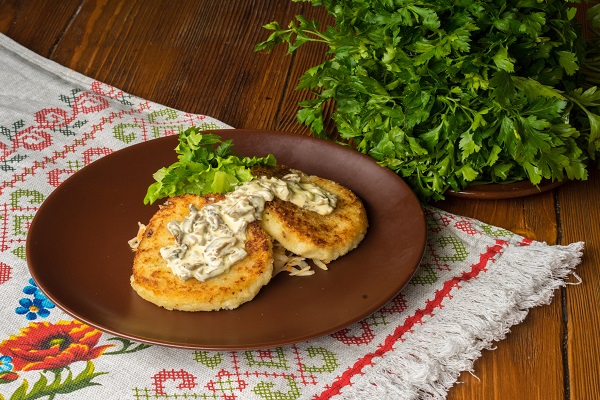 Если говорить о горячих блюдах, то идеальным обедом или ужином могут стать «Картоплянi зрази» - нежные картофельные зразы, фаршированные грибочками. Они подаются с квашенной капустой, сдобренной постным маслом и луком.