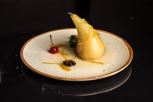 На десерт постящимся предлагается «Груша в медово-лимонном сиропе с орехом и медом». Этот десерт – настоящий фейерверк цвета и вкуса: сочная медовая груша, томленная в медово-лимонном сиропе с орехами.