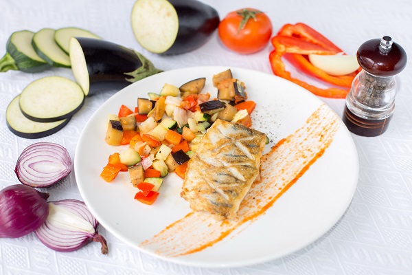 В те дни, когда допускается есть рыбу, постящиеся могут побаловать себя блюдом «Судак с рататуем». Это нежное филе судака, деликатно обжаренное на гриле с гарниром из овощного рататуя и томатным соусом.