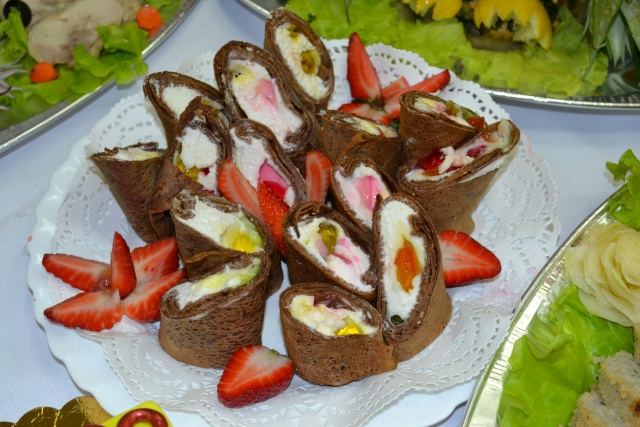 Такой успех оператора питания вполне объясним, ведь работники «Торгового Дома СПП» всегда удивляют посетителей неподражаемой сервировкой своих блюд и их отличными вкусовыми качествами. Столы с угощениями выглядели как настоящие шедевры кулинарного искусства, и гости выставки не переставали восхищаться мастерством работников школьных столовых, фотографируя оригинальные яства: корзинки из теста, расписные пирожные и плетеные пироги, мясные рулеты, фаршированные блинчики и многое другое.