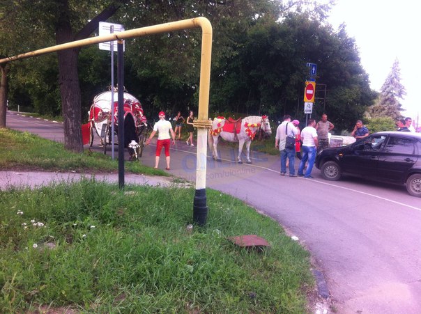 Вчера, 23 июня, около 20 вечера произошло ДТП в центре Ульяновска около ресторана «Колизей». Лошадь с каретой врезалась в два припаркованных автомобиля.