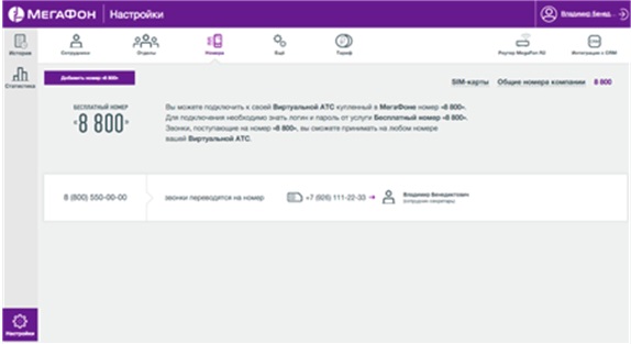 Раньше за выделение обычного или красивого номера необходимо было заплатить, а потом произвести специальные настройки для его подключения к собственной АТС. Теперь использование номера 8-800 стало максимально простым: его подключение доступно в интерфейсе Виртуальной АТС и требует всего несколько кликов. Такая возможность значительно упростит процесс настройки телефонии в компании, а запуск горячей линии 8 800 расширит охват потенциального рынка и повысит лояльность существующих клиентов.