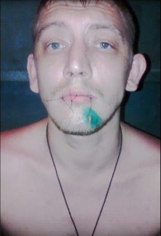В конце репортажа предстает жуткая картина - двое мужчин с зашитыми ртами. Голос за кадром сообщает, что изуродовавших себя заключенных зовут Никита Фадеев и Юрий Павлов.