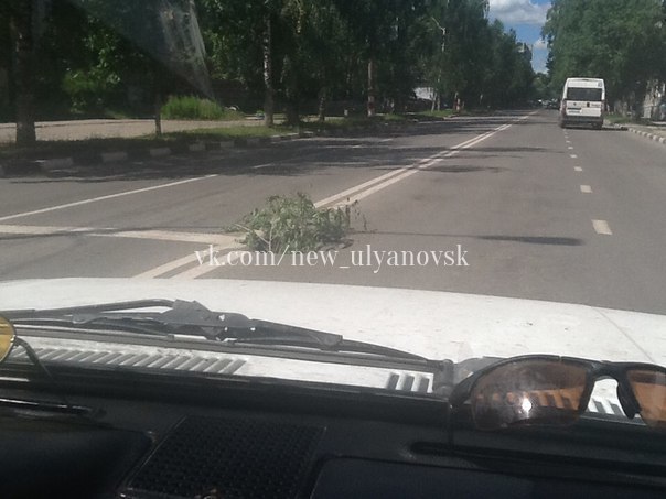 Предприимчивые ульяновцы положили в яму ветки. Очевидно, таким образом они планируют не только предостеречь водителей от попадания колесом в яму, но и привлечь внимание местных чиновников.