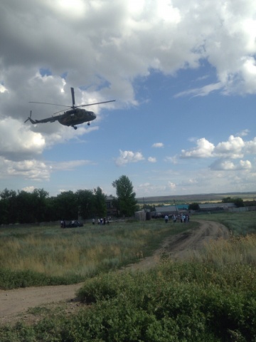 В небе появилось четыре военных вертолета. Чтобы обозначить место посадки, зажгли дымовые шашки: