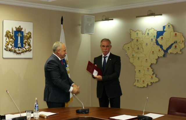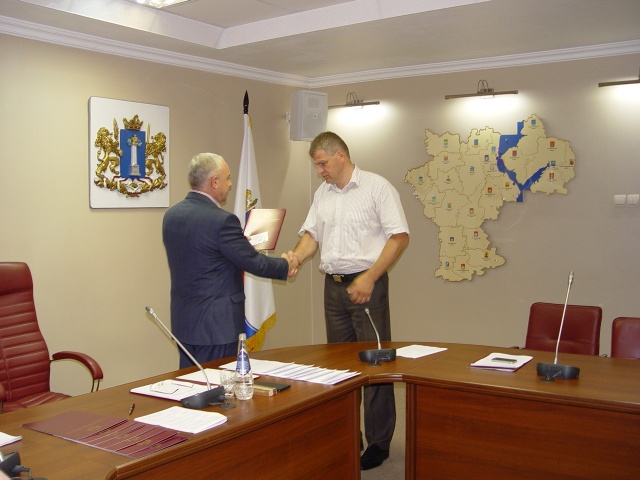 Сергей Морозов получает удостоверение кандидата в губернаторы
