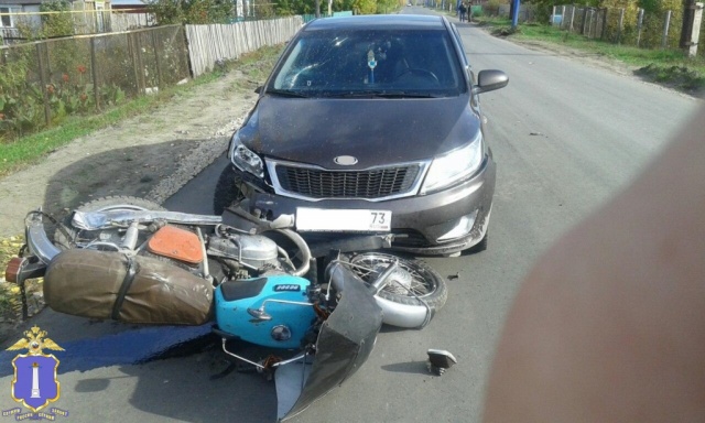 На улице Мира возле дома №15 20-летний водитель мотоцикла «ИЖ Юпитер-4» при выезде с второстепенной дороги на главную, не уступил дорогу автомобилю и столкнулся с KIA Rio, под управлением 26-летнего водителя. Мотоциклист ехал без шлема, у него не было прав, а само транспортное средство не зарегистрировано в установленном порядке. В результате ДТП водитель мотоцикла госпитализирован.