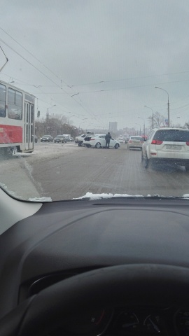 Как сообщают очевидцы, столкнулись две легковушки. В результате столкновения обе машины вынесло на рельсы, из-за этого трамваи в сторону Засвияжья встали. О пострадавших информации пока не поступало, подробности ДТП уточняются.
