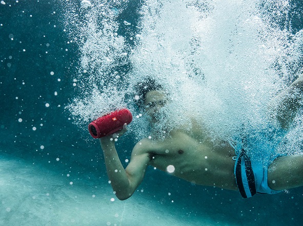 Важное преимущество JBL Charge 3 — влагозащищенный согласно стандарту IPX7 корпус. Это означает, что она может находиться в чистой воде на глубине до 1 м вплоть до 30 минут. Ясное дело, брызги воды от крана или душа либо капли дождя никакого вреда девайсу не нанесут.