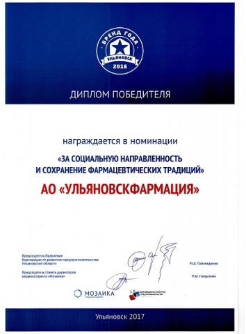 По итогам конкурса, которые были объявлены 26 января, АО «УльяновскФармация» стало победителем в номинации «За социальную направленность и сохранение фармацевтических традиций».