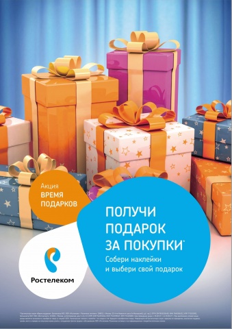 Компания «Ростелеком-Розничные системы» (дочернее предприятие ПАО «Ростелеком) запустила федеральную акцию «Время подарков». Акция действует в более чем 300 центрах продаж и обслуживания «Ростелекома» в 187 городах России, включая Москву, Санкт-Петербург, Омск, Екатеринбург, Пермь, Томск, Новосибирск, Челябинск, Волгоград и другие.