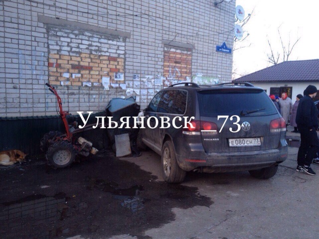 Возле дома №1 по улице Садовой 50-летний пьяный водитель автомобиля «Фольксваген Туарег» на перекрестке не справился с управлением и наехал на стоящий на прилегающей к торговому зданию территории мотоблок «Агро 9», а потом врезался в само здание. В результате ДТП 26-летний водитель мотоблока госпитализирован в БСМП в Ульяновск. Как сообщают очевидцы, у него тяжелые травмы черепа и переломы ног.