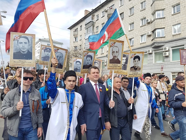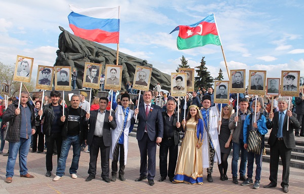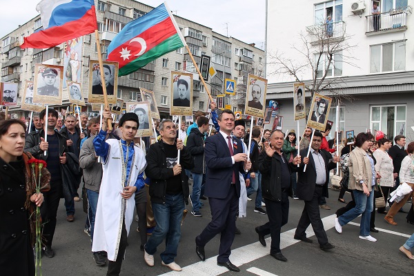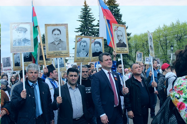 Организовавшись в колонну, они прошли по центральной улице Ульяновска вместе с представителями других общественных организаций региона, отдав дань память всем воинам-победителям и их подвигу.— День Победы – это один из тех праздников, который объединяет всех, вне зависимости от национальности, — говорит председатель автономии Ислам Гусейнов, — в лице фашизма зло покусилось не просто на страны и границы, оно хотело стереть с лица земли целые народы. Поэтому борьба с Гитлером стала делом интернациональным – бок о бок за победу сражались русские, украинцы, белорусы, казахи, азербайджанцы, узбеки – этот список можно продолжать еще долго. Как азербайджанец, я помню и горжусь представителями нашего народа – героями той войны. Сто пятьдесят человек получили золотые звезды, многие из них посмертно – Ази Асланов, Исрафил Мамедов, Мехти Гусейн заде и другие. Мы живы благодаря им!А в 15.00 началось шествие Бессмертного полка – тысячи ульяновцев, взяв в руки фотографии своих родных, воевавших в Великой Отечественной, дали себе и всему миру понять – никто не забыт, ничто не забыто! Смерть коснулась практически каждой советской семьи – например, дед Ислама Гусейнова, Ислам Исмаил оглы ушел на войну в 41-ом вместе с двумя родными и восемью двоюродными братьями. Только трое вернулись живыми — дед погиб в 1942-ом.— Потеряв так много людей на фронте, советский народ не просто смог восстановиться, но и стал мировым лидером, — говорит Ислам Гусейнов, — я думаю, это потому, что павшие герои войны как никто другой объединили народ. Они буквально отдали нам свои жизни и силы, чтобы мы могли жить и быть сильными. И эта сила до сих пор с нами. И так будет до тех пор, пока мы будем помнить.