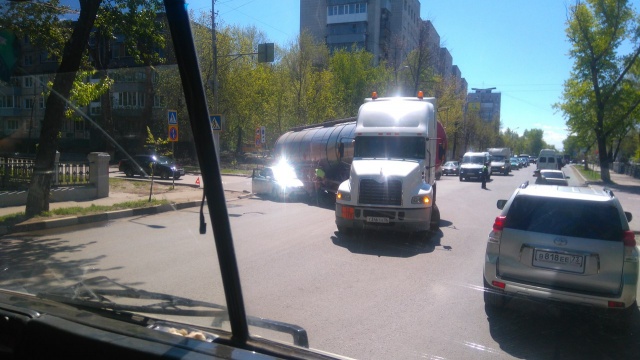 Сегодня, 15 мая, в Ульяновске на перекрестке улиц 12 сентября и Карла Либкнехта столкнулись спиртовоз и иномарка.